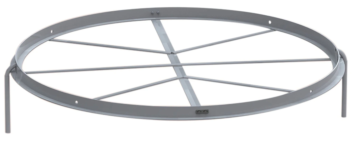 IAAF zertifizierter Abwurfring für Kugelstoß und Hammerwurf zum Einbetonieren auf dem Sportgelände. Maße nach Vorschrift: Ø 2,135 m, 70 mm hoch, 2-teilig für problemlosen Einbau ohne schwieriges kreisrundes Ausrichten. Hergestellt aus Aluminium mit T-Profil und Verstrebungen für hohe Stabilität.