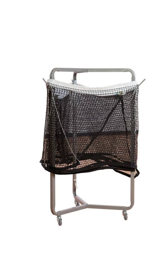 Mit diesem Aufbewahrungswagen für Netzgarnituren sind Badminton- oder Volleyballnetze ab sofort schnell und einfach auf- und abzuwickeln und ordentlich aufzubewahren. Dieser mobile Netzbügel bzw. Netzaufwickelwagen ist für alle Arten von Netzen geeignet, Tennis-, Badminton- oder Volleyball-Netze. Besonders geeignet ist der Wagen für Netzgarnituren. Geeignet für Garnituren mit bis zu 4 Netzen, z.B. für Volleyball-Langnetze. Der Wagen an sich ist zerlegbar und besteht aus pulverbeschichtetem Stahlrohr. Der Netz-Aufbewahrungswagen hat stabile und leichtgängige Fahrrollen und ist somit auf engsten Raum, z.B. im engen Geräteraum, sehr gut manövrierfähig.
