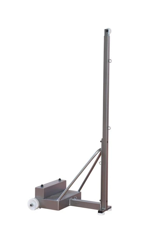Dieser mobile Badmintonpfosten ist freistehend mit seitlich angebrachten Rollen für den leichten Transport ausgestattet. Die Transportrollen haben einen Durchmesser von etwa 10 cm. Das schwere Gewicht am Fußausleger sorgt dafür, dass der Spielpfosten stabil steht. Die Auslage ist ca. 64 cm. Die Pfosten bestehen aus aus robustem Stahlrohr mit einem Profil von 40 x 40 mm. Das obere Ende des Pfostens ist teleskopartig um bis zu 15 cm verstellbar, um die gewünschte Netz-Höhe zu erzielen (Einstellbar von ca. 155 bis 170 cm). Dieser Badminton-Spielpfosten ist nach den Vorschriften des Badminton-Verbandes ausgelegt. Gewicht ca. 80 kg.