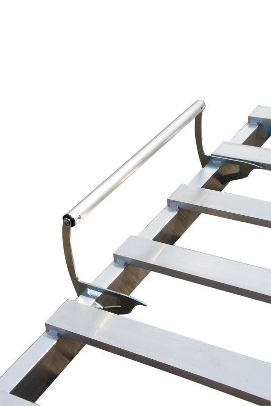 Der Bügel verhindert ein Abrutschen der Hochsprung-Matte. Üblich sind 4 Bügel am Lattenrost, je ein Bügel an der Seite und 2 Bügel hinten.