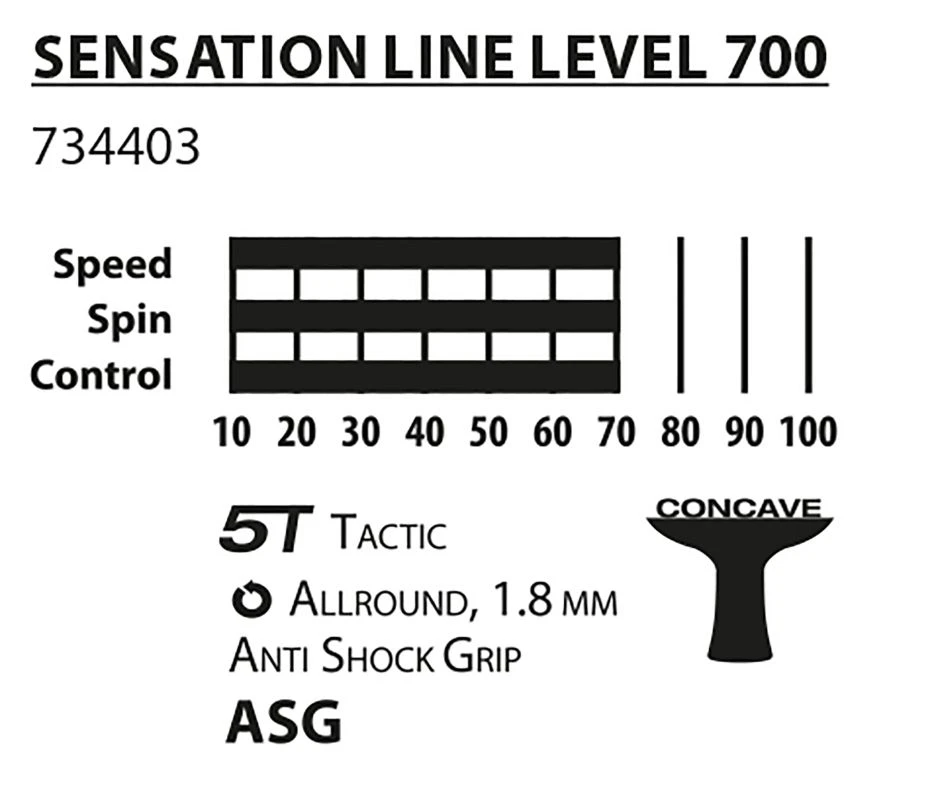 Der „Sensation ASG“ von Donic-Schildkröt ist ein Schläger in sehr hochwertiger Verarbeitung, der mit dem rutschsicheren „Anti Shock Grip“ (ASG) ausgestattet ist. Der weiche und sehr haltbare Schaumstoffüberzug saugt den Schweiß auf und sorgt für exzellente Griffsicherheit sowie mehr Komfort. Die Schläger der „Sensation Line“ sind optimal geeignet für ambitionierte Hobby- & Freizeitspieler, ebenso als Privatanschaffung für den Schulgebrauch. Das Modell Sensation 700 ASG punktet mit seinem griffigen Schildkröt Avantgarde-Belag, mit dem sich die verschiedenen Spieltechniken gut auf den Ball übertragen lassen. Der zwischen Belag und Holz befindliche 1,8 mm starke Schwamm generiert eine gute Dosis an Power, schnellere Ballgeschwindigkeiten bei gleichem Krafteinsatz sind der Vorteil gegenüber einem dünneren und somit preiswerter herstellbaren Schwamm.