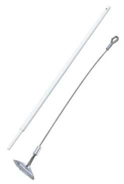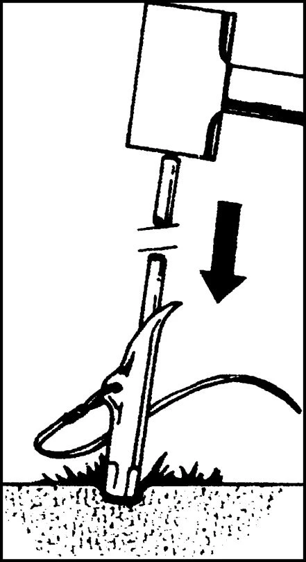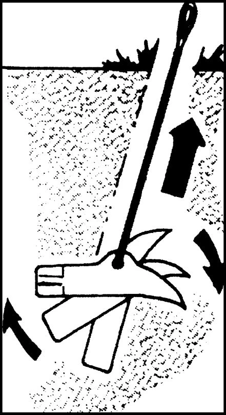 Der Einschlag Erdanker besteht aus einem Stahldrahtseil, 30 mm stark und 40 cm lang, mit Kauschenschlaufe. So funktionierts: Der Erdanker wird mit einem ca. 45 cm langen Hilfs-Rundeisen in die Erde eingeschlagen und dann herausgezogen. Durch Anziehen des Stahlseiles an der Kauschenschlaufe stellt sich der Erdanker im Erdreich quer und ist somit sehr fest verankert. Die Auszugskraft beträgt ca. 100 kg.