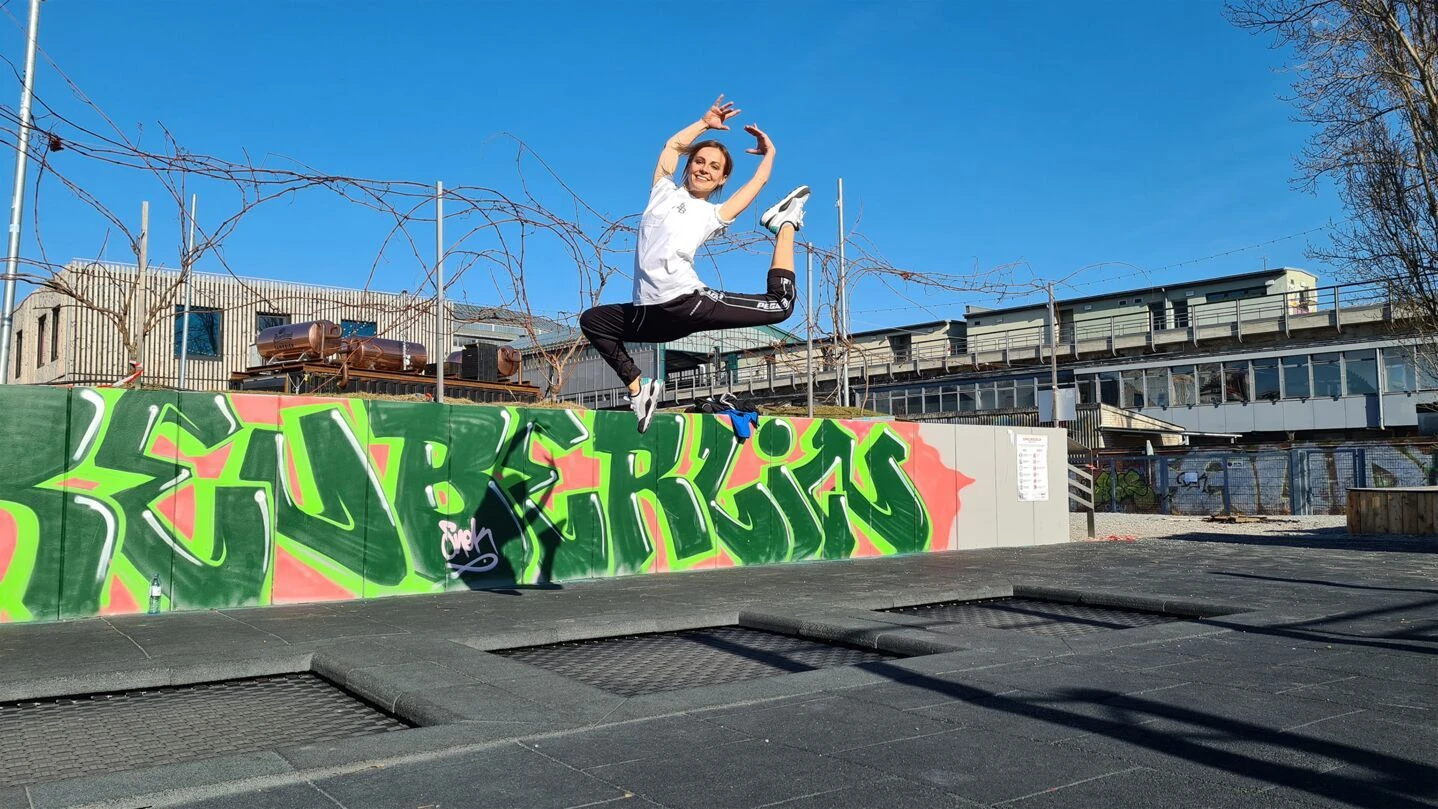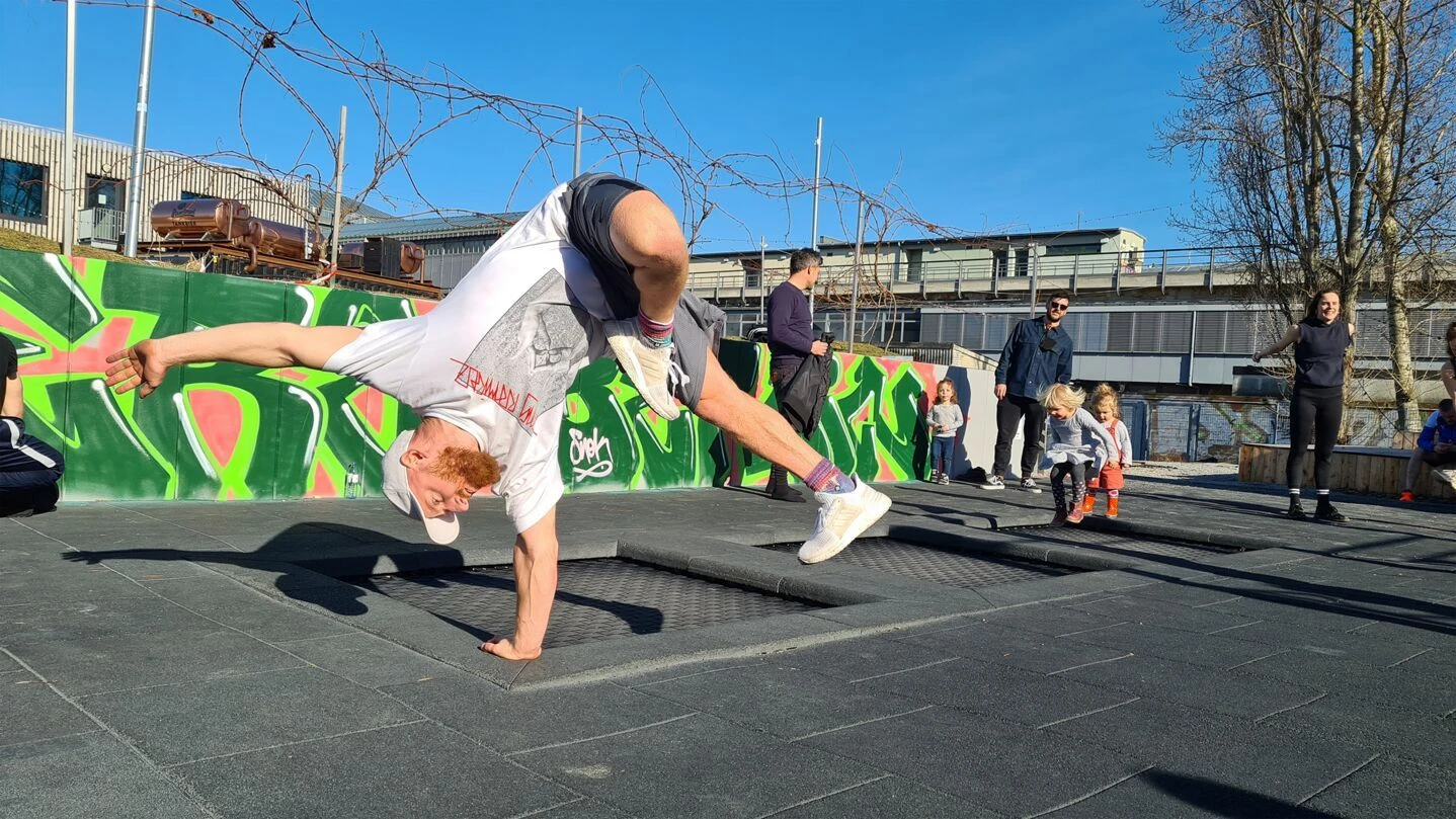– Sicherheitsbereich: 150 cm ab Außenkante Trampolin