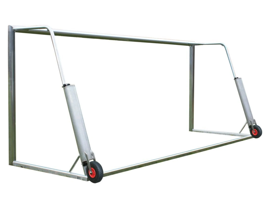 Die fahrbare Kippsicherung für Tore wird am Netzbügel angebracht und kann vor Ort mit trockenem Sand befüllt werden. Die Gewichte werden mit Klemmen an den Netzbügel geschraubt. Dazu ist es wichtig das Profil des Netzbügels bei der Bestellung anzugeben. Die Kippsicherung kann bei Jugend- und Großfeldtoren, auf dem Rasen oder Kunstrasen zum Einsatz kommen. Mit diesem Paar Kippsicherung entsprechen die bestückten Tore der DIN-EN 748.