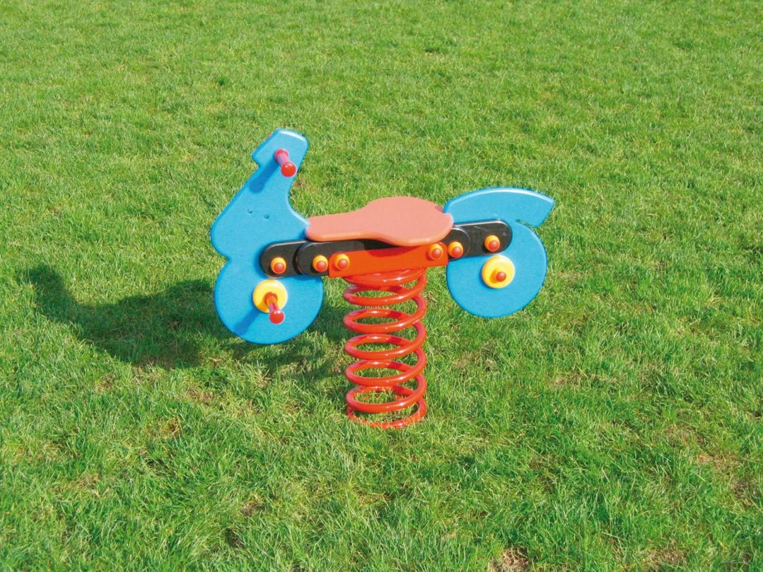 Die Federwippen sind in Form eines Pony (S4165), eines Fischs (S4167) oder als Motorrad (S4166) erhältlich. Die Federwippe Fisch eignet sich besonders für kleine Kinder, da die seitlichen Wandungen einen Schutz vor dem Herausfallen bieten.