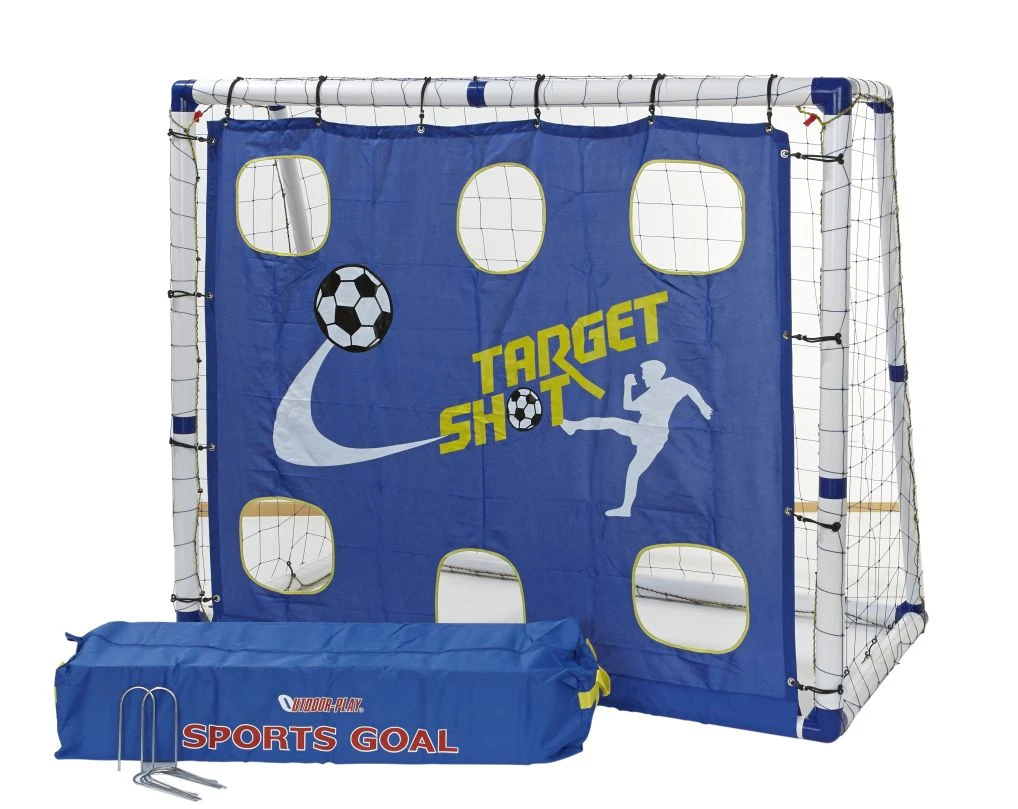 Das Freizeittor gibt es in verschiedenen Varianten und mit den beliebtesten Torgrößen für Freizeit- und Hobby-Fußballer. Die Konstruktion besteht aus 53 mm starken Kunststoffprofilen. Das Tornetz, Netzhaken und Bodenverankerungen sind inklusive.