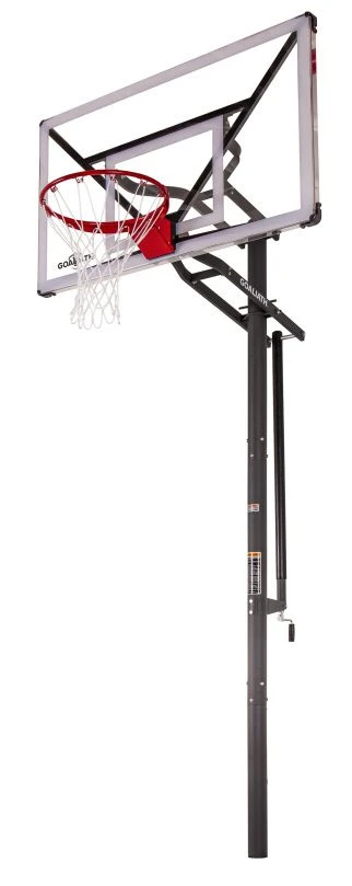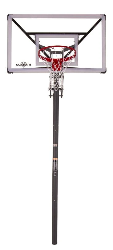 Freizeit-Basketballanlage mit Polycarbonat-Zielbrett 137 x 84 cm und einfacher Höhenverstellung von 203 bis 305 cm. Säule (Ø 9 cm) aus pulverbeschichtetem Stahl mit ca. 63 cm Ausladung.