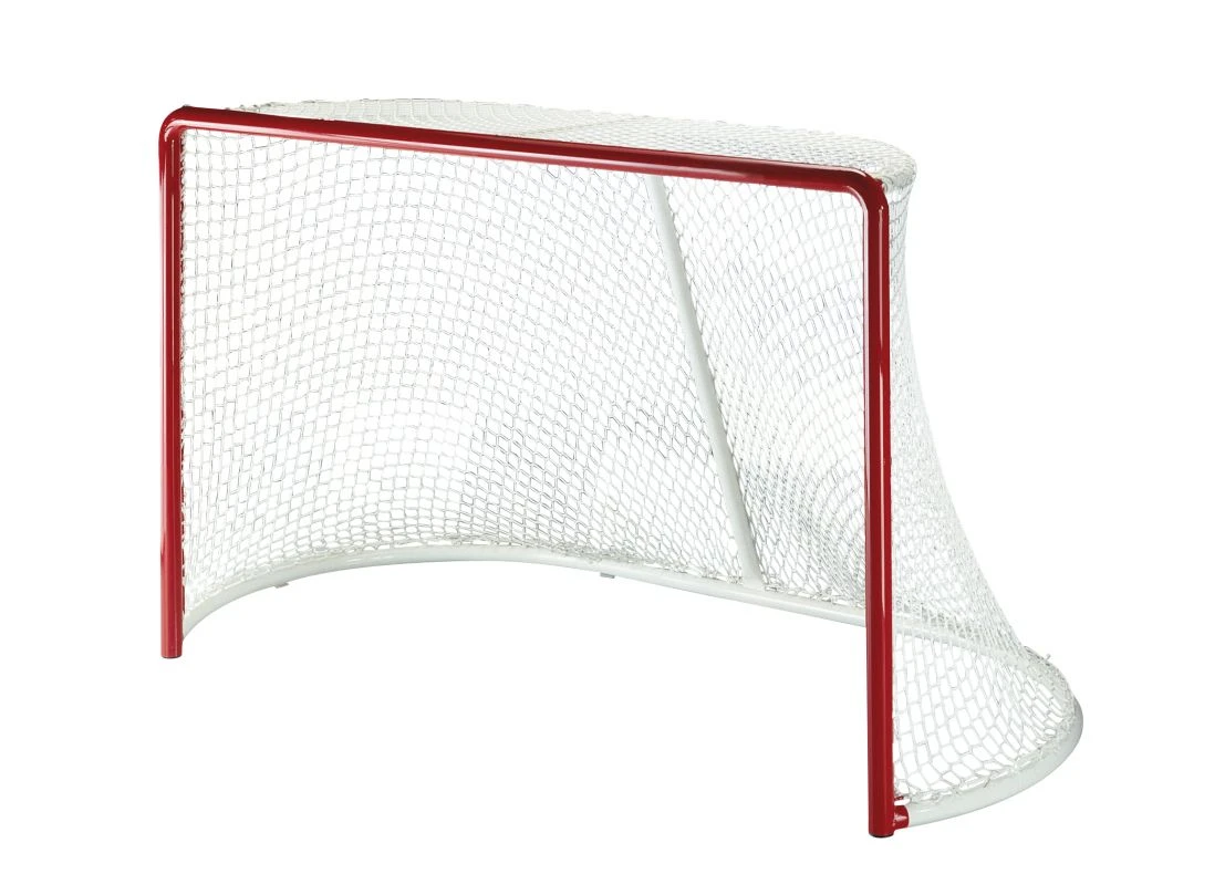 Eishockeytor mit der offiziellen Größe von 183 x 122 cm Innenmaß, gemäß IIHF. Das Tor kann auch für Inline-Hockey verwendet werden. Die äußerst stabile Konstruktion wurde aus Stahlrohr Ø 50 mm gefertigt. Die Torrahmen, die Pfosten und die Latte sind pulverbeschichtet und rot. Die Torbügel sind ebenfalls pulverbeschichtet, aber weißfarbig. Die Netzbügeltiefe beträgt oben 60 cm und unten 112 cm.
