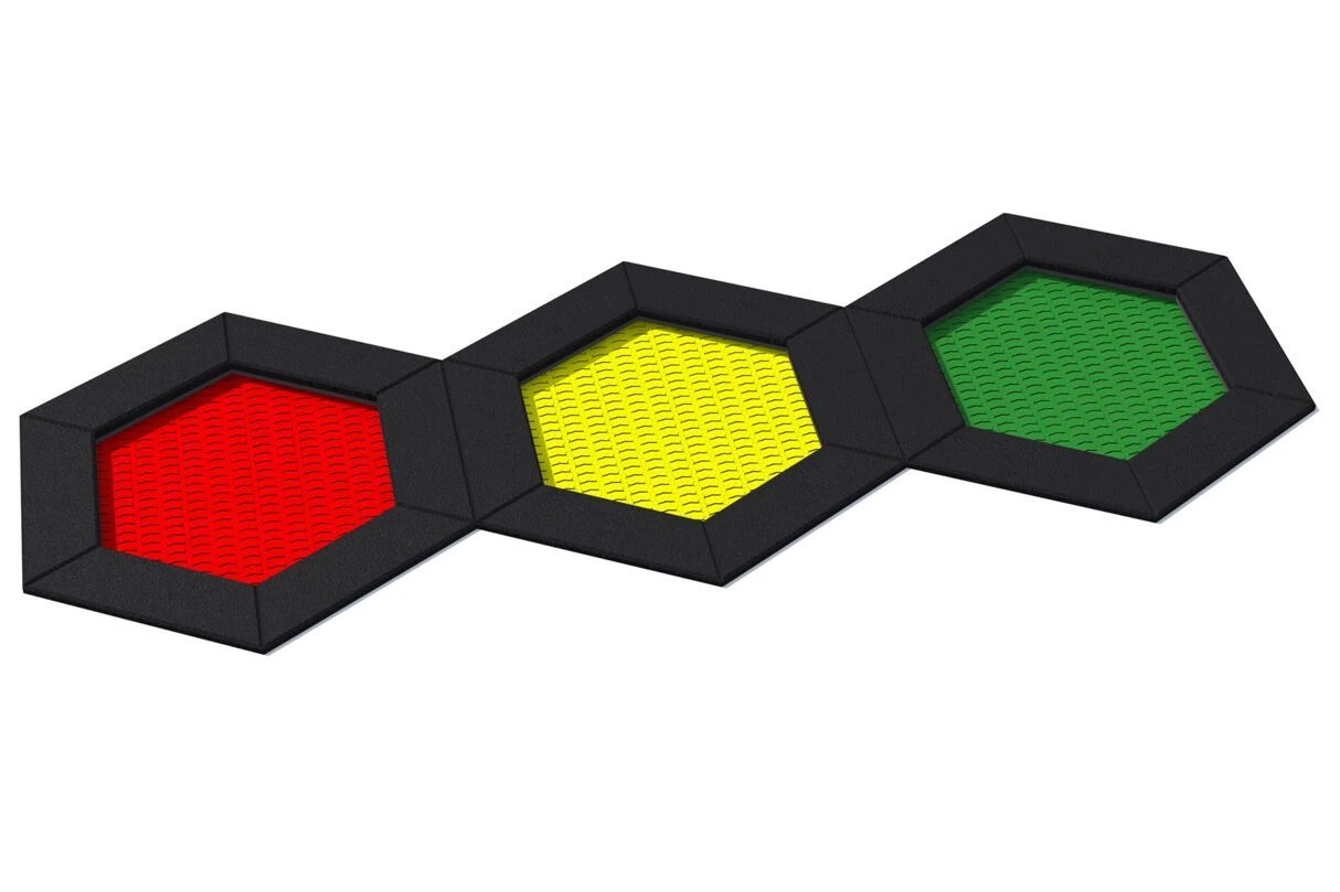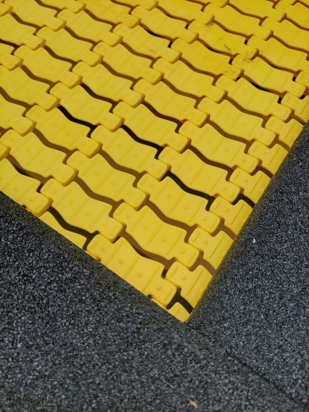 Ein Spielplatz ohne Trampolin ist kaum vorstellbar. Für die intensive Nutzung im öffentlichen Bereich ist das Trampolin mit Kunststofflamellen als Sprungmatte ausgestattet. Durch die v-förmigen Lamellen wurden die Abstände zwischen den Lamellen auf nur 7 mm reduziert, dadurch wird das Hereinfallen von kleinen Gegenständen wie Schlüsseln oder Mobiltelefone in den Trampolinkasten verhindert.