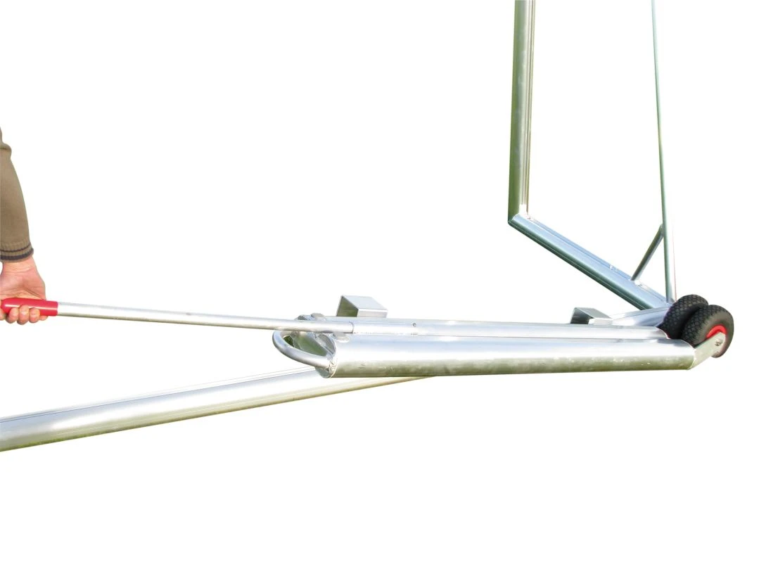 Es ist eine fahrbare Antikippsicherung nach EN 748 TYP 4, die sich für sämtliche freistehende Tore, speziell für Kunstrasen und Kunststoffplätzen, eignet. Das Gesamtgewicht im befülltem Zustand liegt bei 80 kg pro Stück. Das Set enthält 2 Stück für ein Tor. Zum leichten Transport einfach den Griff rausziehen. Bitte Maße des Bodenrahmens angeben.