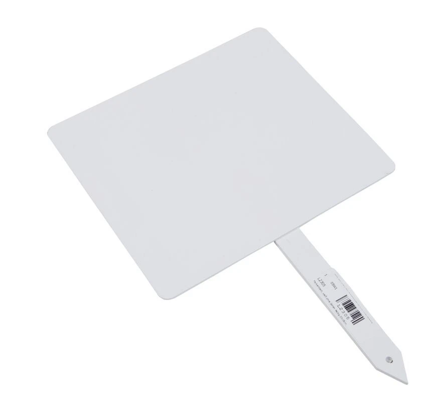 Das viereckige Markierblech eignet sich zum Einstecken in den Boden. Das weiße Markierbleche ist ideal zur Kennzeichnung von Start, Ziel etc. auf dem Rasen geeignet.