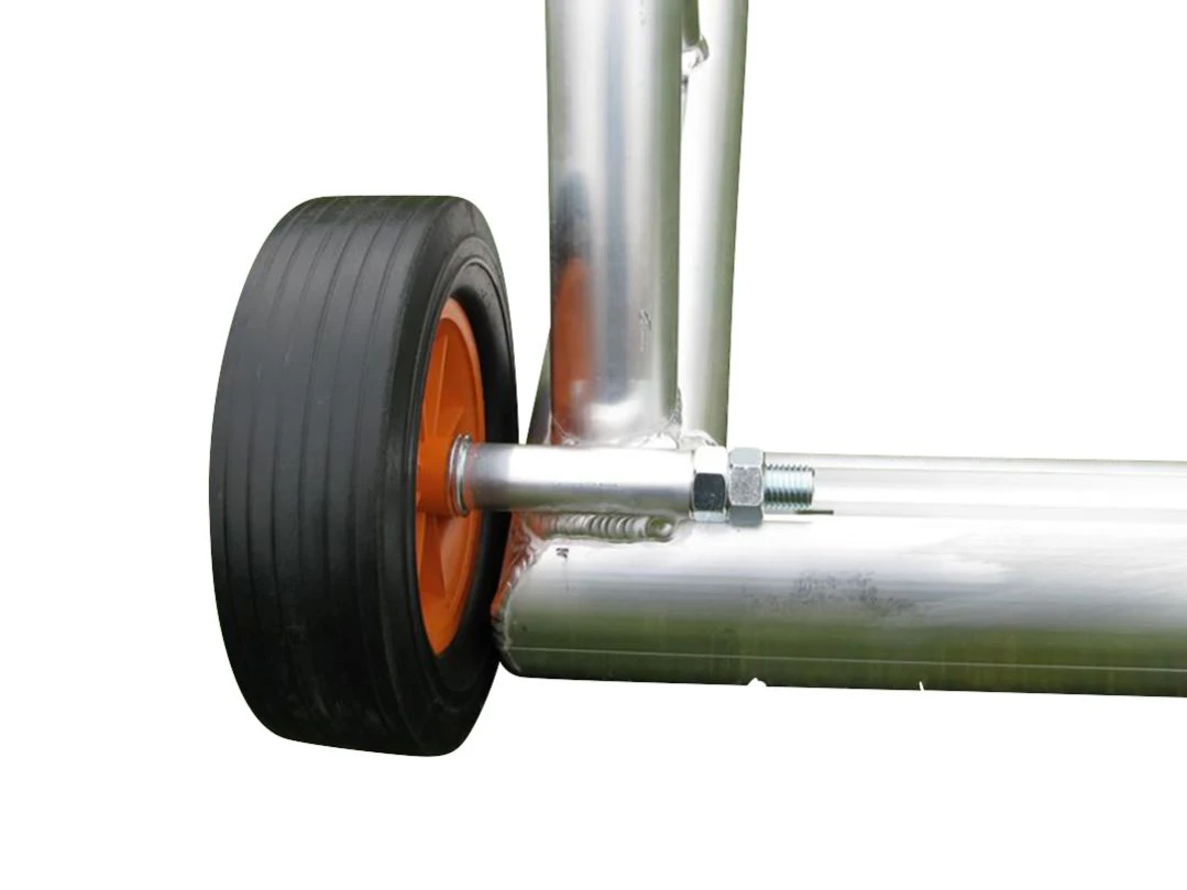 Radaufnahme für vollverschweißte Tore mit einem Bodenrahmenprofil von 120 x 100 oder 75 x 40 mm.