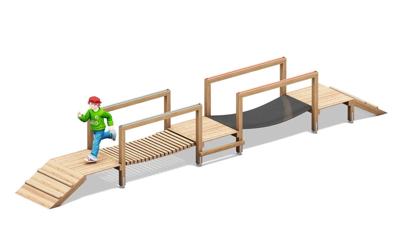 Die spannende Brückenvariation ist perfekt zum Trainieren der unterschiedlichen Motorik- oder Balance-Eigenschaften. Durch die Optimierung wurden die Brücken an die Bedürfnisse der Kinder mit Entwicklungsstörungen angepasst. Steigende Herausforderungen werden durch die unterschiedlichen Schwierigkeiten gewährleistet.
