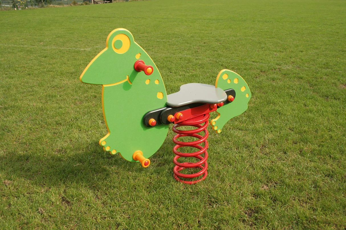 Die Federwippe Frosch besteht vollständig aus hochwertigem PE, ist witterungsbeständig und hat eine sehr hohe Lebensdauer.