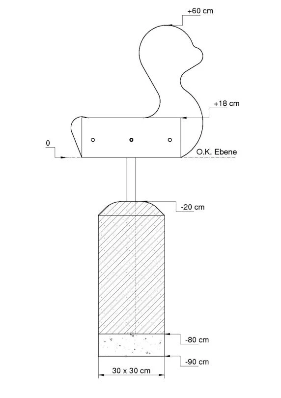 Das Sitztier ist eine ideale Ergänzung für draußen. Die Ente ist durch ein Fundament fest im Boden verankert und steht fest auf dem Boden. Dank der geringen Fallhöhe von ca. 20 cm kann das Sitzelement auch unbeaufsichtigt für Kleinkinder aufgestellt werden.