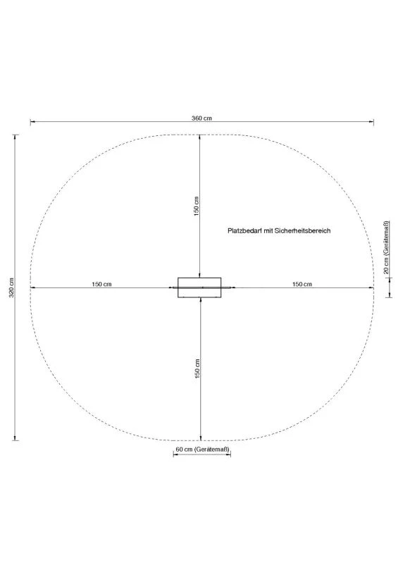 – Fallbereich: 3,60 x 3,20 m