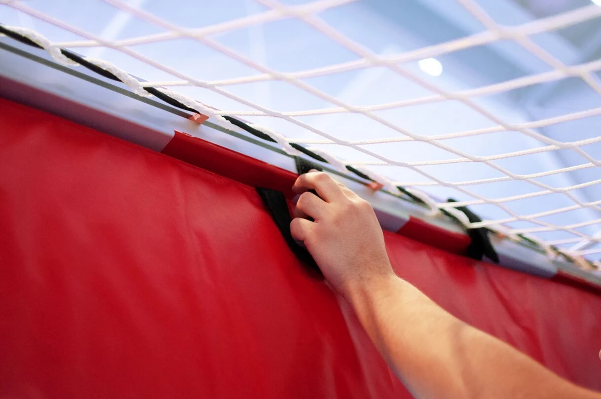 Die perfekte und günstige Alternativ zu einem Minihandballtor ist eine Verkleinerung. Dieses Modell ist aus Schaumstoff und PVC und dadurch sehr leicht und ohne jedes Verletzungsrisiko. Außerdem ist sie mithilfe von Klettverbindern sehr schnell und einfach angebracht und reduziert die Torhöhe von 2 auf 1,7 m. Durch die Materialzusammensetzung werden zudem die Würfe geräuscharm abgefangen. Zur platzsparenden Lagerung lässt sich die Verkleinerung außerdem einmal umklappen.