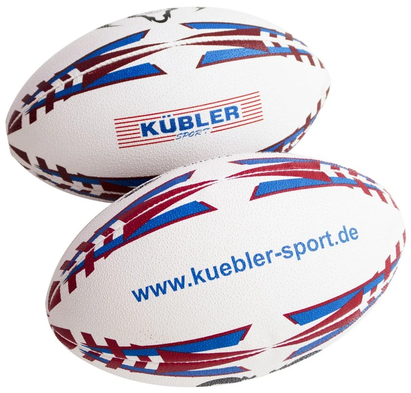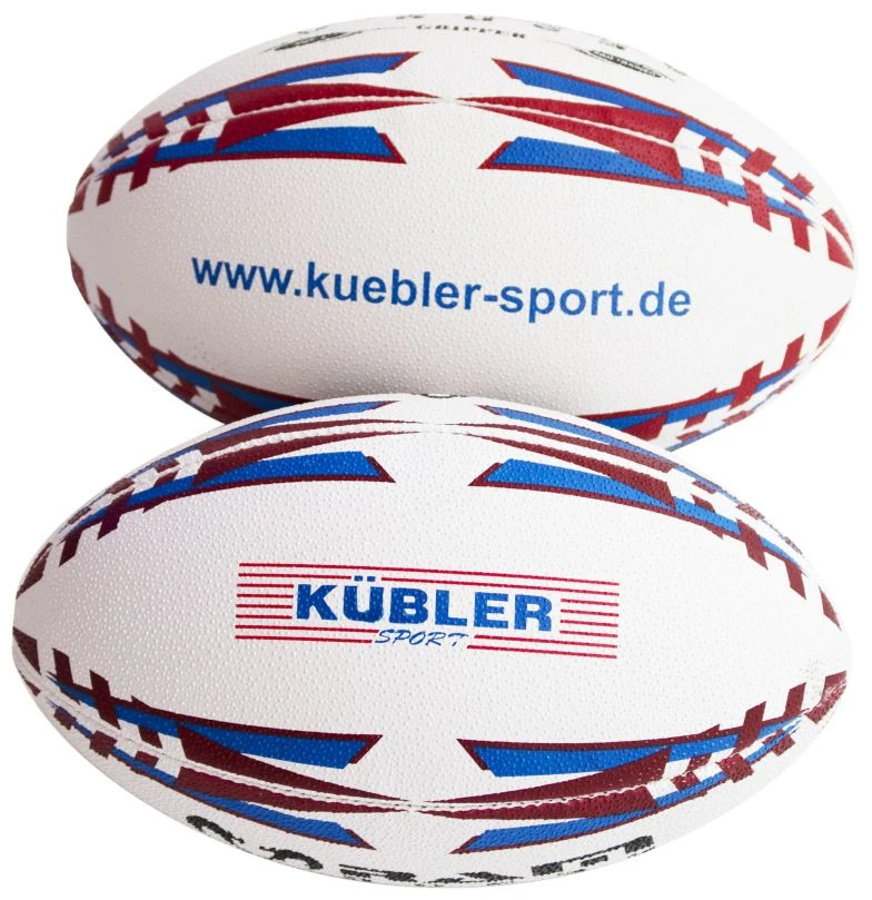 Ram Rugby-Ball powered by Kübler Sport. Dreilagige Ballausführung mit Gummibeschichtung, 3D Griffigkeit für die ideale Kontrolle beim Passen und Fangen, High-Tech Innenverkleidung, handgenäht.