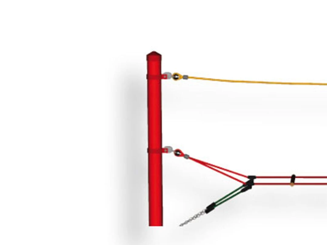 Die einzelnen Elemente des Seilparcours Haiger lassen sich beliebig untereinander kombinieren. Ein optimales Spielplatzgerät mit geringer Fallhöhe von max. 150 cm. Rasen ist deshalb als Fallschutz ausreichend geeignet. Das Rastermaß eines jeden Elementes beträgt 3 m. Die Seile und Netze aus Herkulesseil Ø 16 mm garantieren hohe Farbbeständigkeit und eine besondere Abriebfestigkeit.