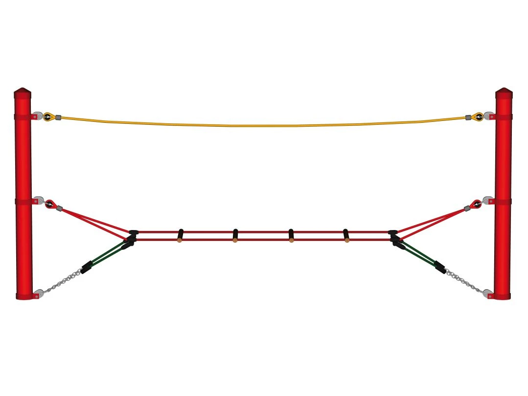 Die einzelnen Elemente des Seilparcours Haiger lassen sich beliebig untereinander kombinieren. Ein optimales Spielplatzgerät mit geringer Fallhöhe von max. 60 cm. Rasen ist deshalb als Fallschutz ausreichend geeignet .Der Geräteraum des Parcours beträgt 315 x 40 cm und benötigt einen Mindestraum von 610 x 340 cm. Das Rastermaß eines jeden Elementes beträgt ca. 3 m. Die Seile und Netze aus Herkulesseil Ø 16 mm garantieren hohe Farbbeständigkeit und eine besondere Abriebfestigkeit.