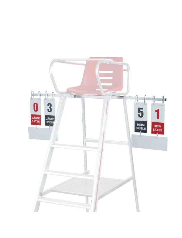 Der Tennis Spiel- und Satzanzeiger ist das ideale Vereinszubehör für Tennisvereine mit gehobenem Anspruch. Die Gesamtspielstandsanzeige ist beidseitig ablesbar (Vorder- & Rückseite) und kann auch nachträglich noch an allen herkömmlichen Schiedsrichterstühle angebracht werden. Das komplette Befestigungsmaterial ist im Lieferumfang inbegriffen. Die Zahlen sind mit 9 cm Höhe auch von Weitem noch sehr gut ablesbar. Der Schiedsrichter kann außerdem bequem von seinem Platz aus den Spielstand regulieren.